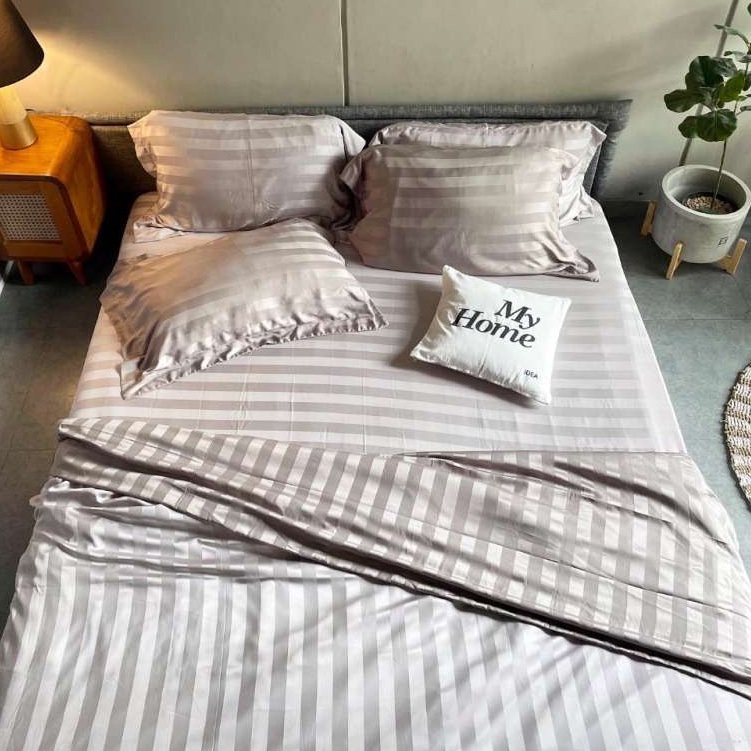 Bedcover Set Sprei Sutra Tensel Jacquard Organik Motif Salur