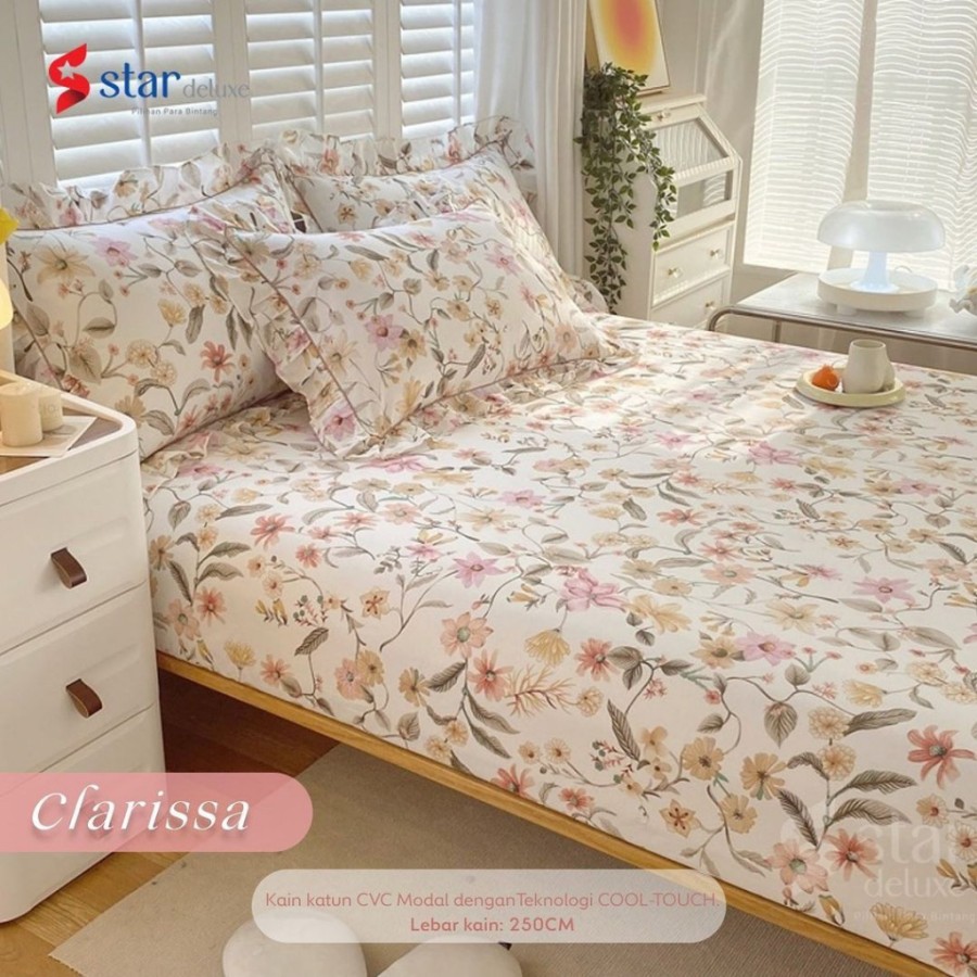 Sprei berbahan lembut dan halus dengan motif yang cocok untuk kamar anak perempuan! Motif bunga Clarissa yang feminim dengan dasar warna yanng soft memberikan kesan yang manis pada ruanngan kamar kalian! Motif Clarissa menjadi pilihan yang indah untuk kamar tidur anak perempuan atau ruangan tidur utama dengan tema yang lembut dan elegan.
